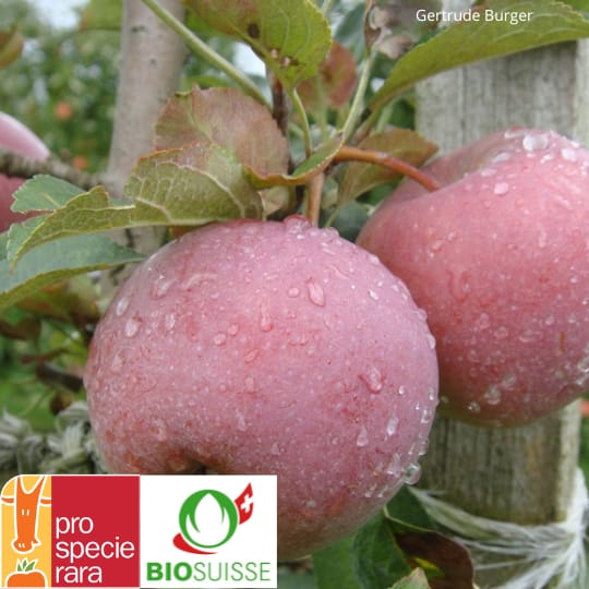 Der Apfelbaum Berner Rose ist ideal für höher gelegene Gebiete, winterhart und eignet sich gut für den Obstbau in der Familie und für den Bio-Anbau. Es handelt sich um eine alte, für die Biodiversität wertvolle Sorte, die ohne chemische Behandlung gesunde Früchte liefert.