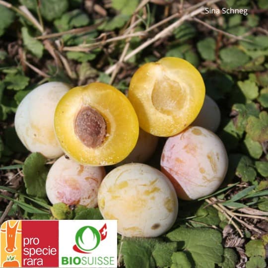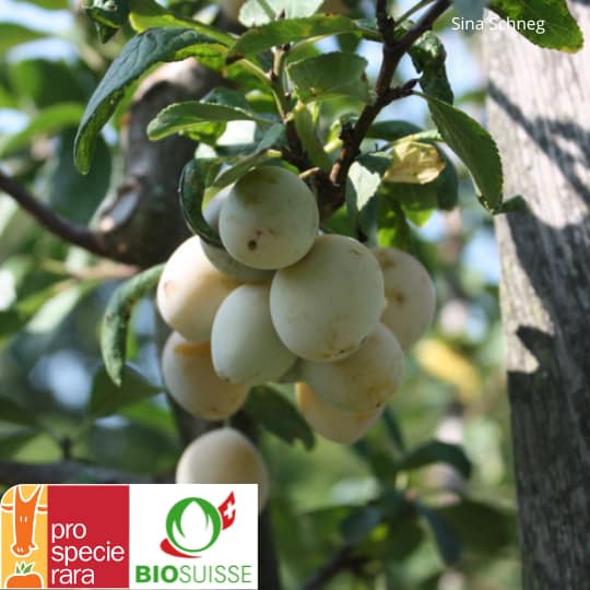 Autofertile, ce prunier ne nécessite pas d’autre variété pour produire abondamment. Il s’adapte facilement au climat suisse et convient bien aux zones en altitude, offrant des récoltes régulières avec peu d’entretien. Sa saveur intense en fait une valeur sûre, aussi bien pour une consommation familiale que pour la transformation.